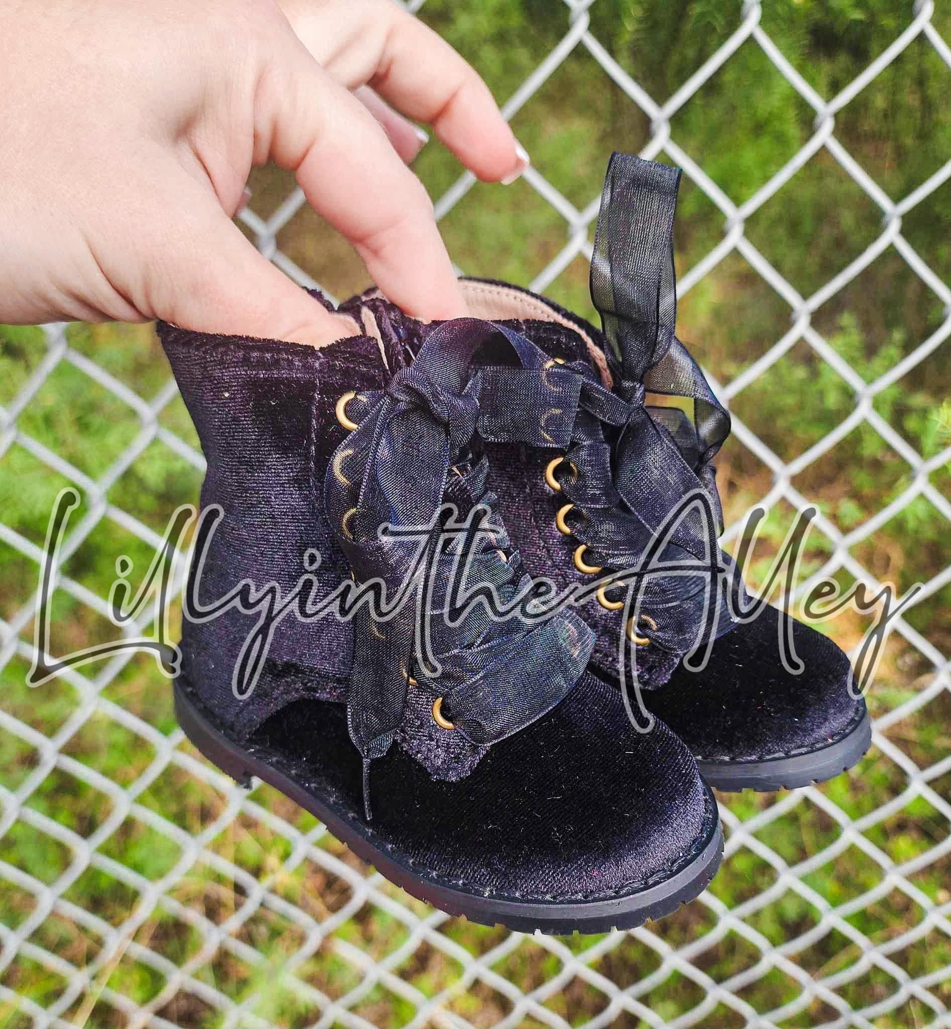 Our pre-order children's glitter combat boots are the perfect addition to any little one's wardrobe. These boots are made with high-quality materials and feature a sparkling glitter finish that is sure to catch the eye. They are also designed with durability in mind, so your child can wear them through all of their adventures.