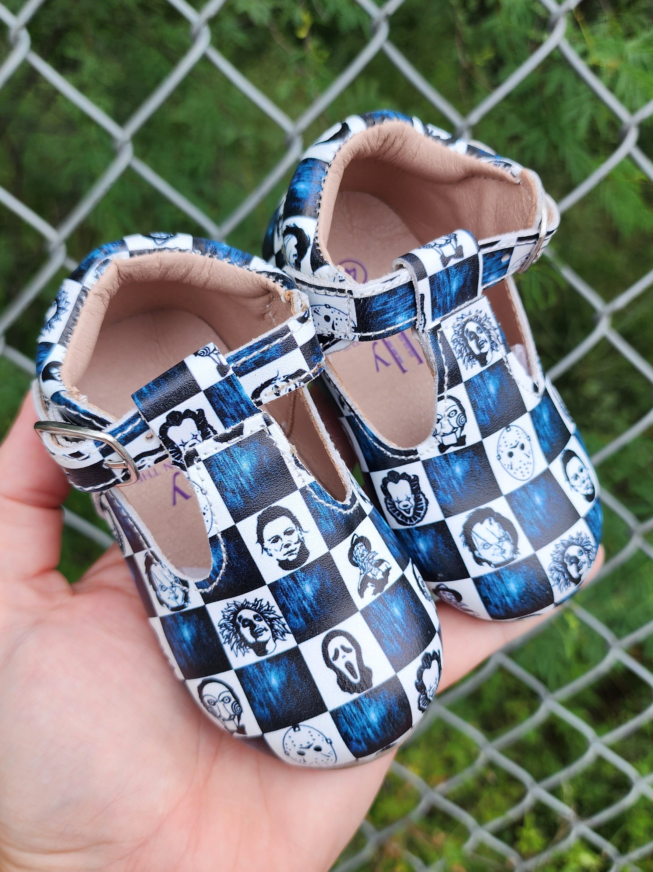 Horror Checkered T-Strap Shoes